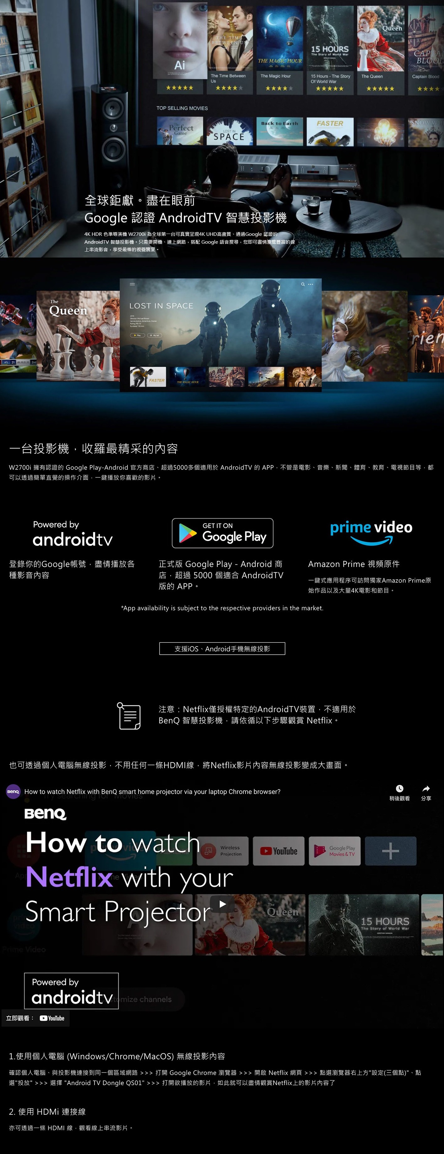 - Google 官方認證 Android TV系統,支援iOS/Android/notebook無線投影