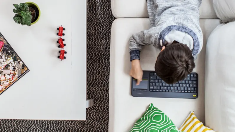 舒適安靜的按鍵與大型觸控板讓您輕鬆瀏覽娛樂,具有超小型隨插即用 USB Unifying 接收器,可以簡單快速完成設定。