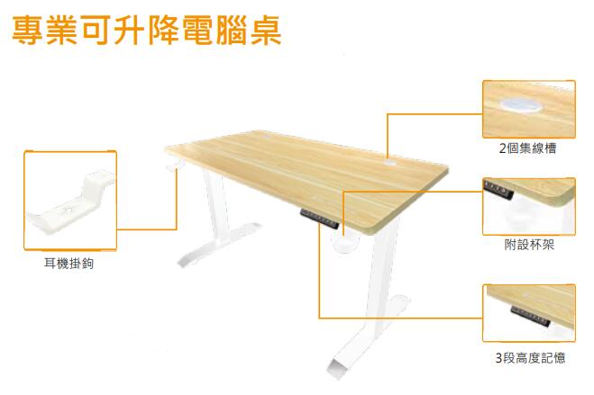 - 控制板:3個記憶預設控制板,可設置坐和站的高度。