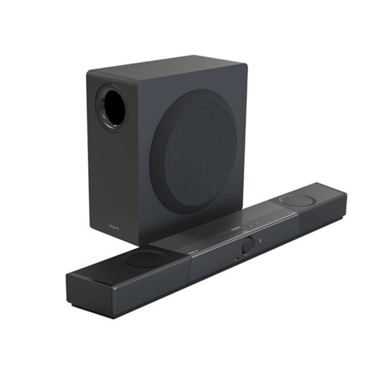 配備的 10 英寸驅動單元安裝在一個緊湊的外殼中,隨附的無線重低音喇叭的低音質量遠超其重量。平穩而異常強勁的低音在整個房間中迴蕩,讓您下意識地屏住呼吸。重低音喇叭強大而緊湊讓您感受猶如影院般的戲劇效果。