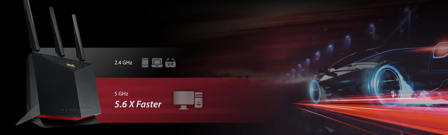 ![RT-AX86U Pro is a dual-band WiFi 6 router.]()