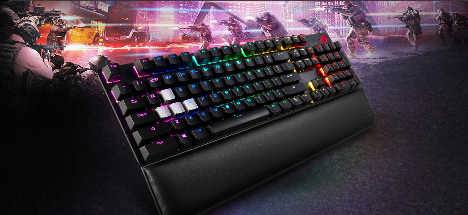 ROG Strix Scope Deluxe 採用 Cherry MX RGB 鍵軸,提供玩家及同好喜愛的精準機械觸感。 德國製優質鍵軸以其可在每次按下按鍵時提供最佳觸發與反應性而聞名。
