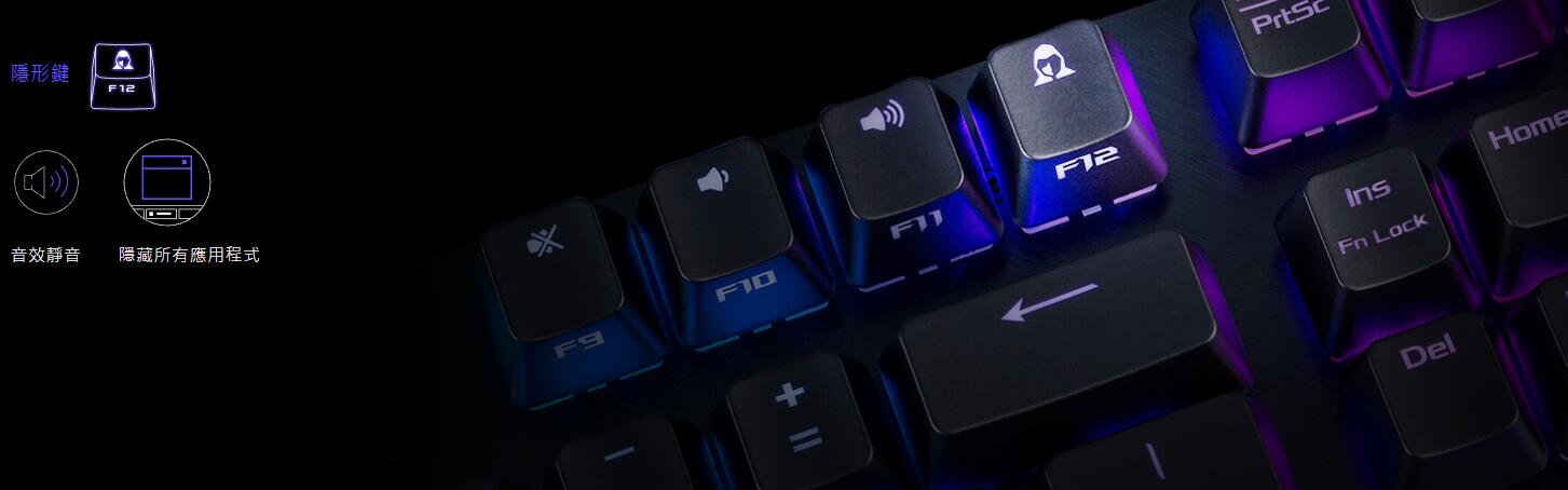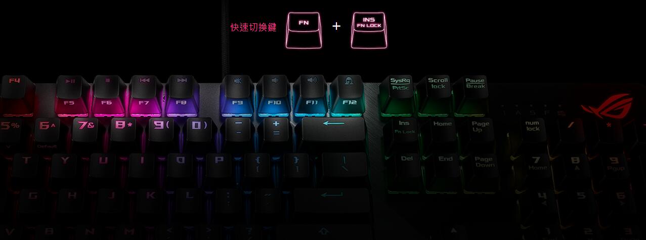 - 照明效果熱鍵:Lighting Effects Switch within a Profile: Fn + Right or Fn + Left