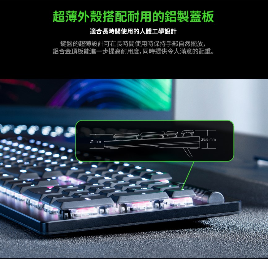 - 1,680 萬種色彩可選的 Razer Chroma™ RGB 可自訂背光效果