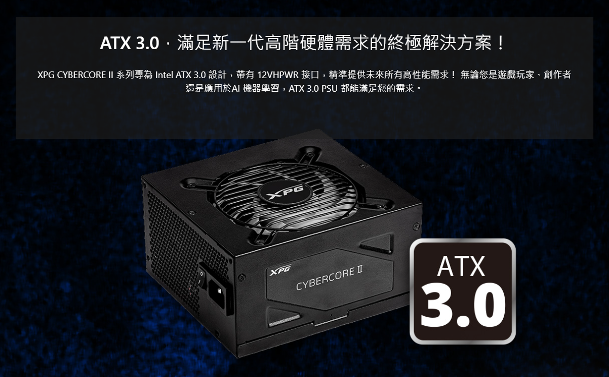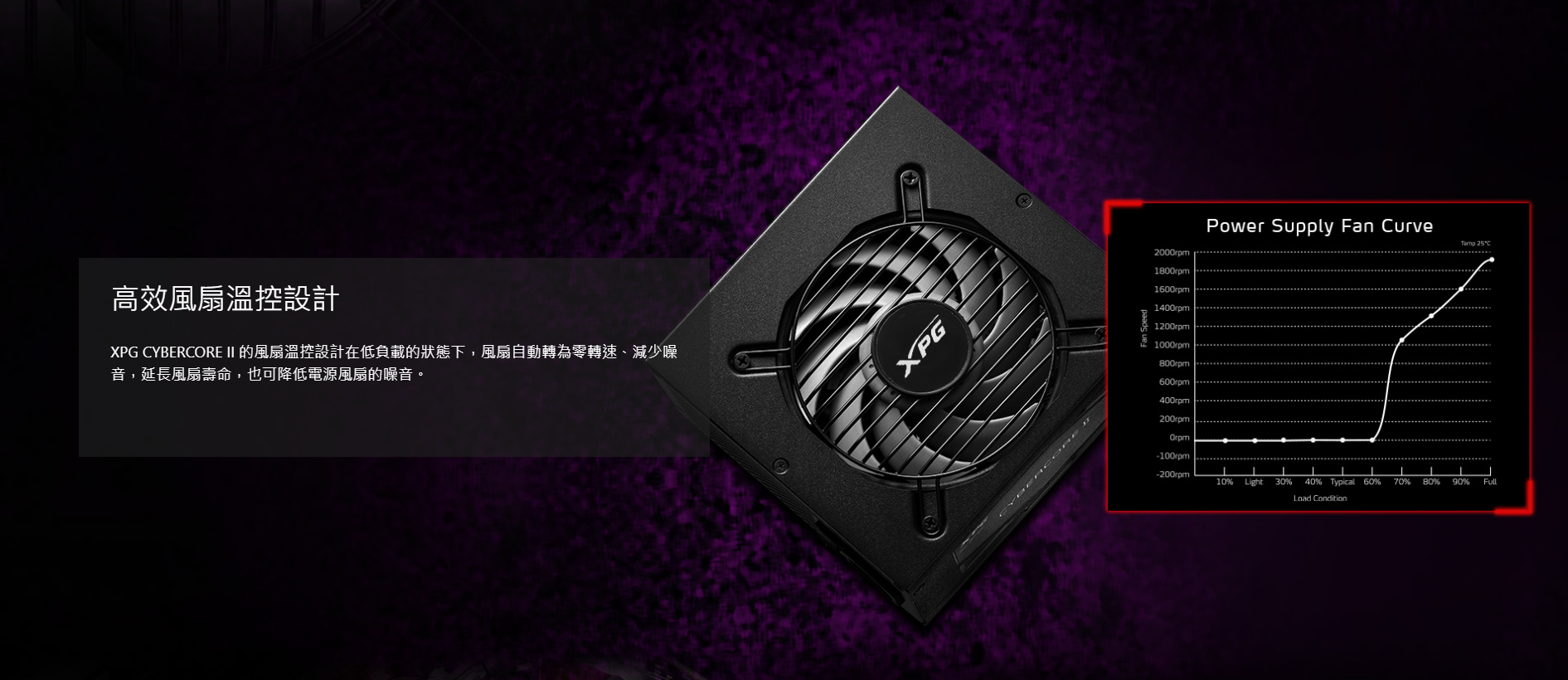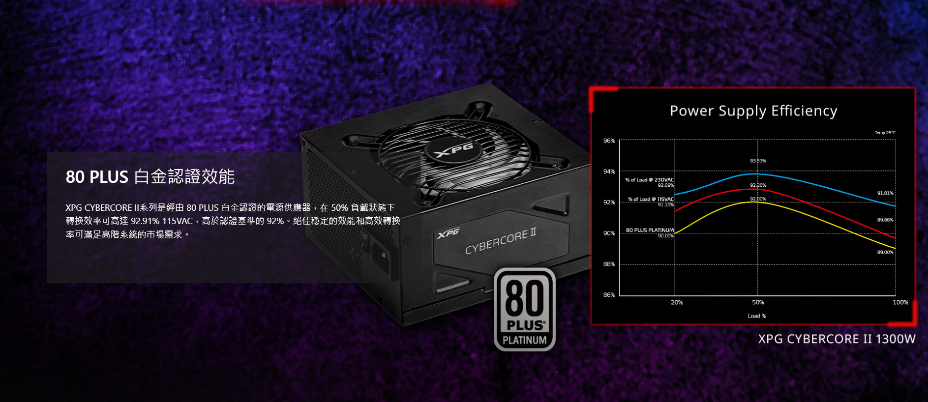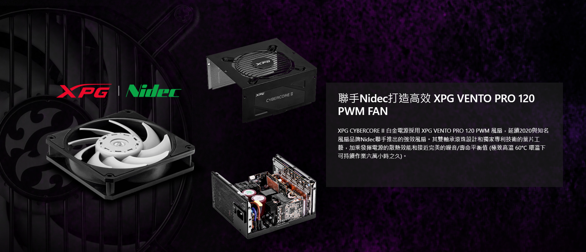 隨著 ATX 3.0 規格問世,需要更嚴格的電壓和電流調節以適應新一代硬體需求。 XPG CYBERCORE II 白金系列,展現卓越的電源供應器研發技術,搭配XPG與Nidec聯手打造的XPG VENTO PRO 120 PWM風扇優化散熱效能,展示XPG滿足消費者更高功率需求的決心。