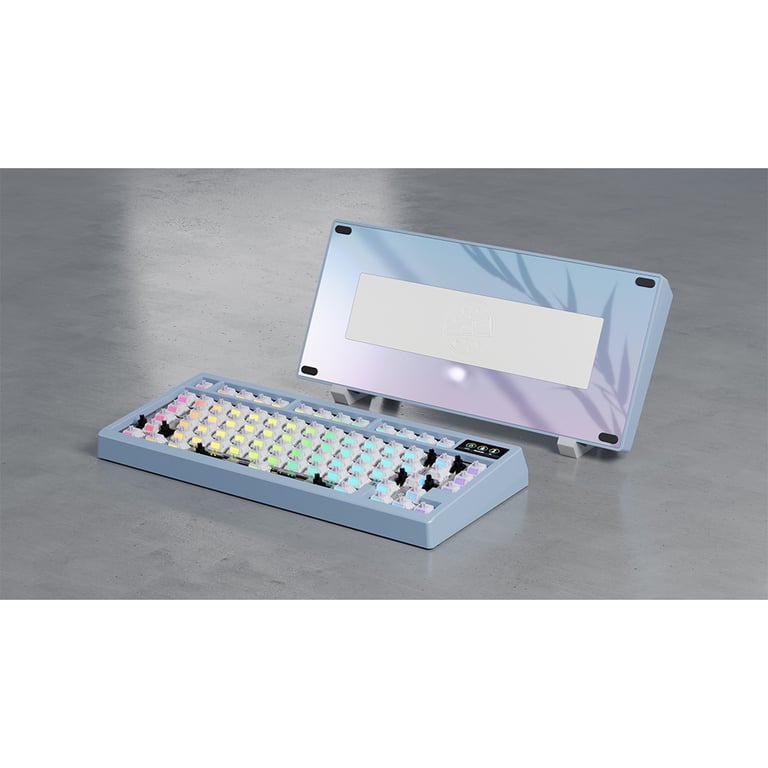 [預組裝無鍵帽成品] Meletrix Zoom75 EE 客製化鍵盤半成品(雲霧藍噴塗外殼、E-White配重旋鈕、 天藍色玻璃背板-雲霧藍-WS MORANDI SWITCH)