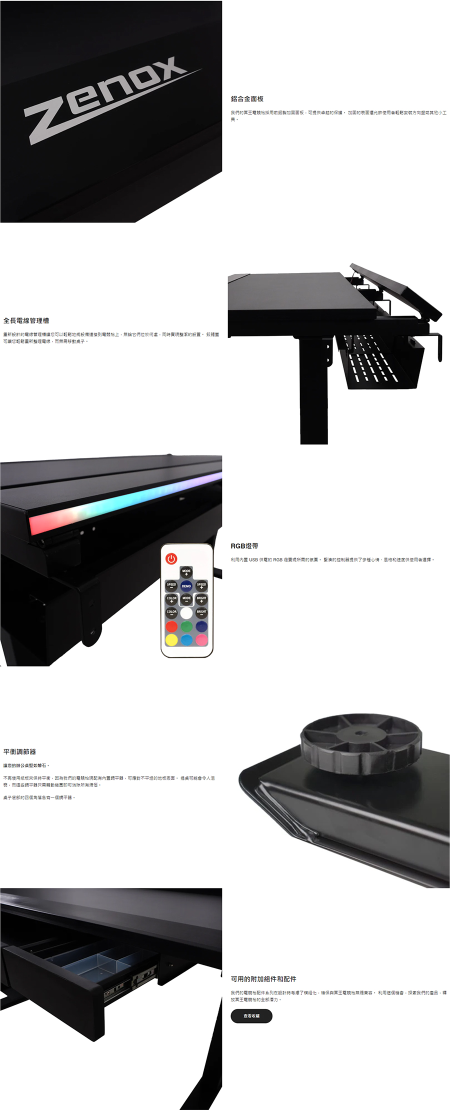 - - 內置電線管理線槽,獨有可掀式桌面板