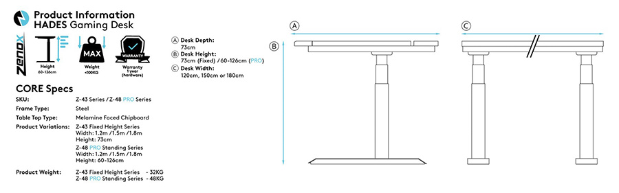 Hades 冥王 / Zenox Ergonomics Office人體工學文書枱/人體工學辦公枱 Lite 系列: