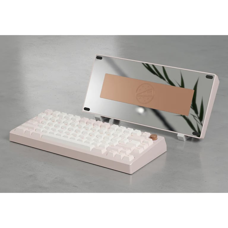 [現貨套件] Meletrix Zoom75 EE 客製化鍵盤套件(奶桃粉, 玫瑰金配重旋鈕, PVD銀背板, 有開槽三模PCB)