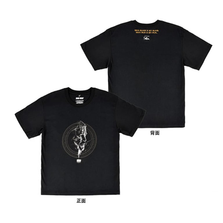 正面圖案為熄滅蠟燭白煙裊裊、緩緩向上,構成主角 John Wick 的形象。背面則是電影大反派俄羅斯殺手組織 —— Ruska Roma 的誓詞「YOUR BLOOD IS MY BLOOD. YOUR PAIN IS MY PAIN...」,及印有烙印圖案作為點綴。