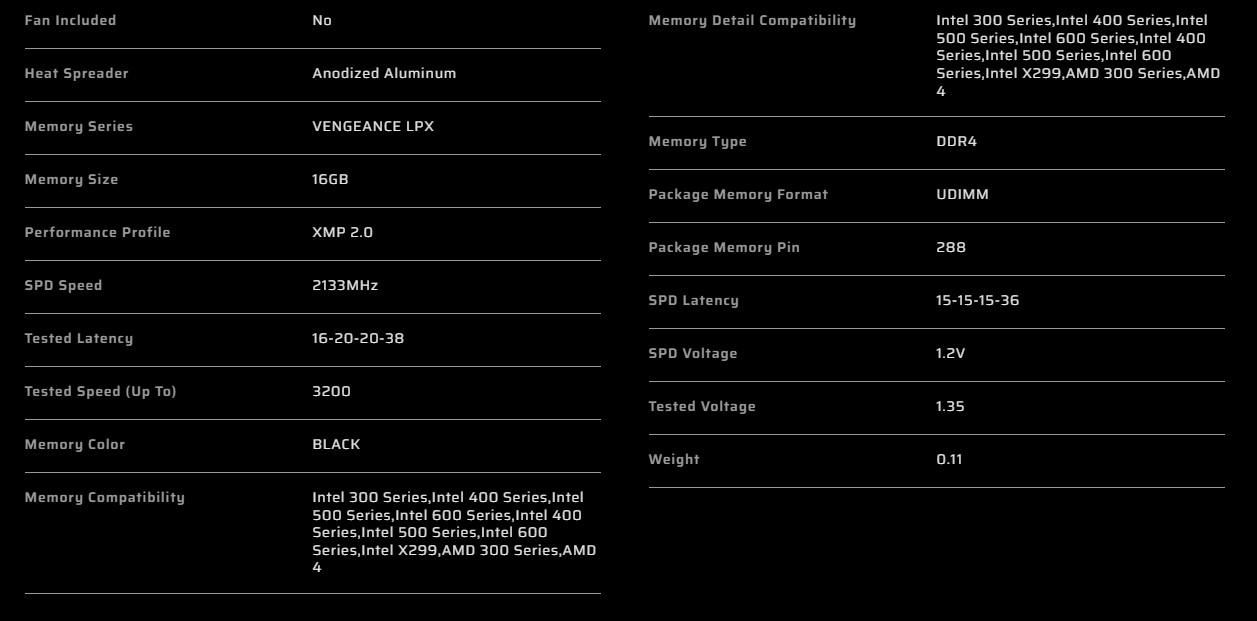 Corsair VENGEANCE LPX with Heatsink DDR4-3200MHz 32GB (16GB x2) CL16 BLACK(CMK32GX4M2E3200C16)