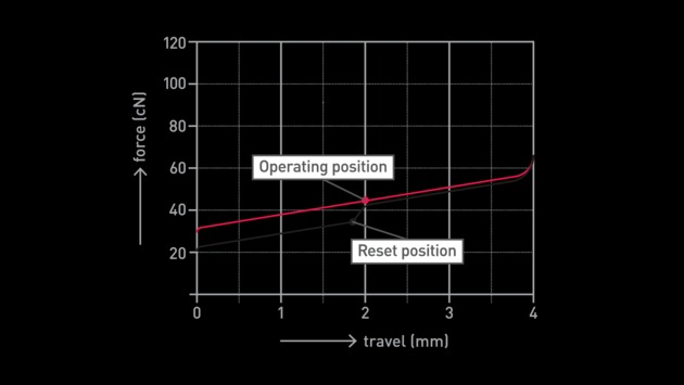 CHERRY MX2A RED switch: Linear easy actuation without pressure point with minimal resistance