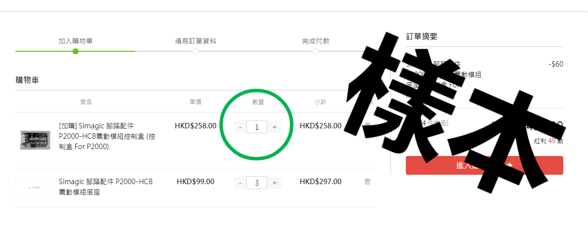 圖二:結賬畫面請確保控制盒數量正確,如不正確請自行調整,完成後按進入結算中心進行結賬。
