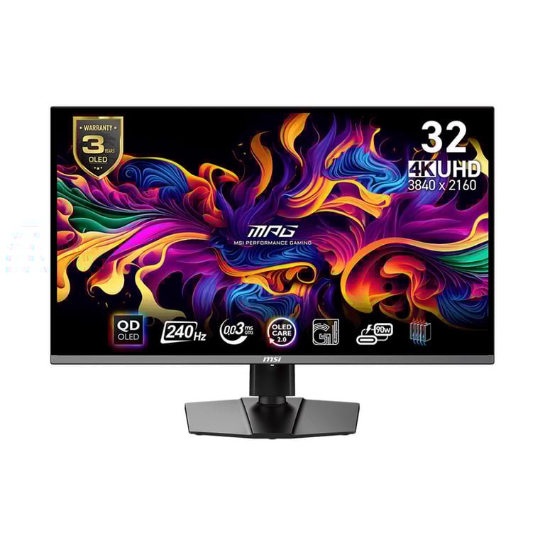 MPG 321URX QD-OLED 遊戲顯示器讓您的勝利盡收眼底。它擁有 3840x2160 (UHD) 下一代 QD-OLED 面板、240Hz 刷新率和 0.03ms(GtG)快速響應時間。