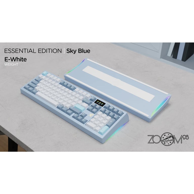 [現貨套件]Meletrix Zoom98 EE 客製化鍵盤套件(雲霧藍噴塗外殼、E-White配重、有開槽三模PCB)