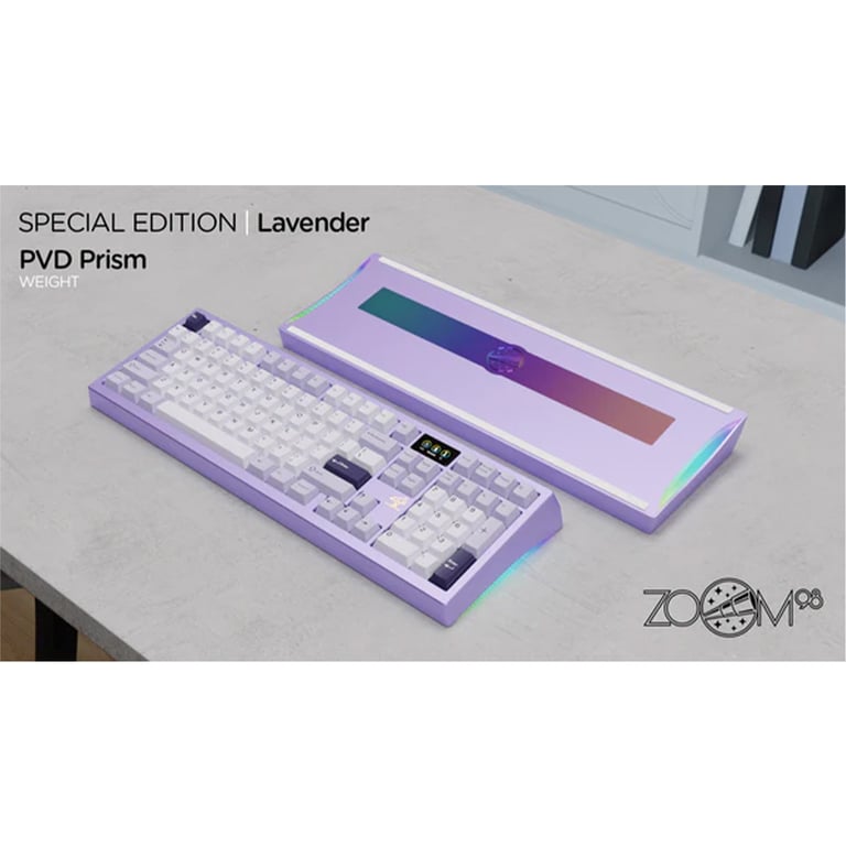 [現貨套件]Meletrix Zoom98 SE 客製化鍵盤套件(薰衣草紫陽極外殼、炫彩PVD配重、有開槽三模PCB)