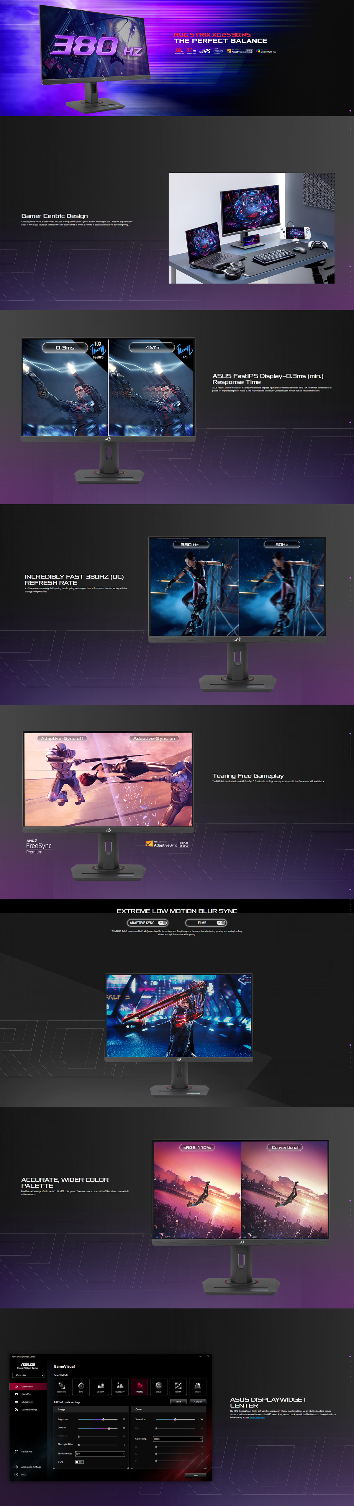 ROG Strix XG259QNS 電競顯示器 - 25 英寸(24.5 英寸可視)FHD (1920x1080)、380 Hz (OC)、快速 IPS、1 毫秒 GTG(最低 0.3 毫秒)、HDR、DisplayWidget Center
