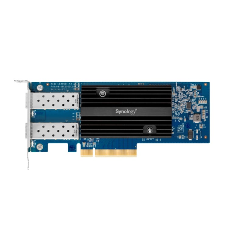 Synology E10G21-F2 是一張雙埠 10GbE SFP+ 網路擴充卡,幫您突破網路頻寬瓶頸,適用於提升多用戶網路應用效能,或高畫質影片播映等密集工作負載的使用環境。