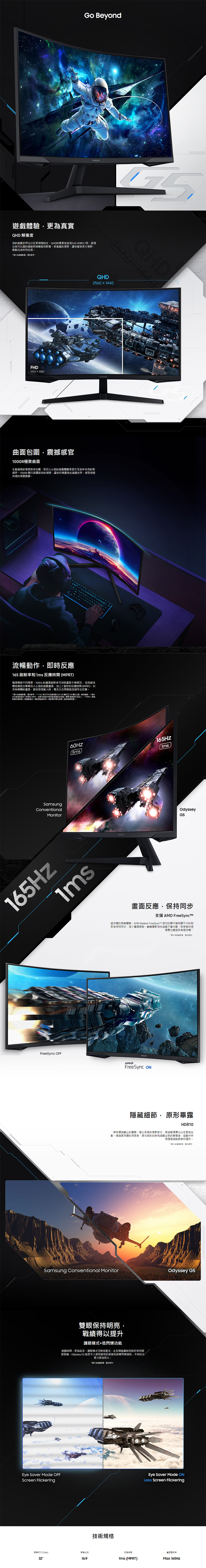- 支援 AMD FreeSync™:AMD Radeon FreeSync™ 技術可確保顯示器和顯示卡的重新整理率同步,減少影象撕裂,讓您的遊戲體驗更加流暢。
