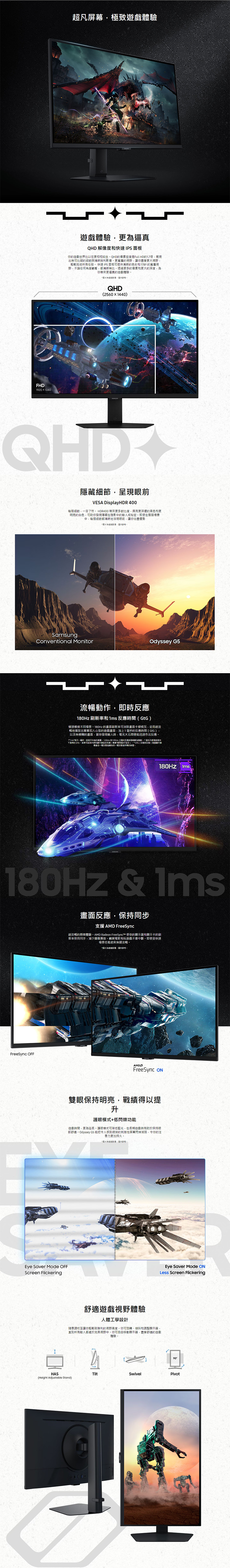 - 180Hz 刷新率和 1ms 反應時間(GtG),極速橫掃不同場景