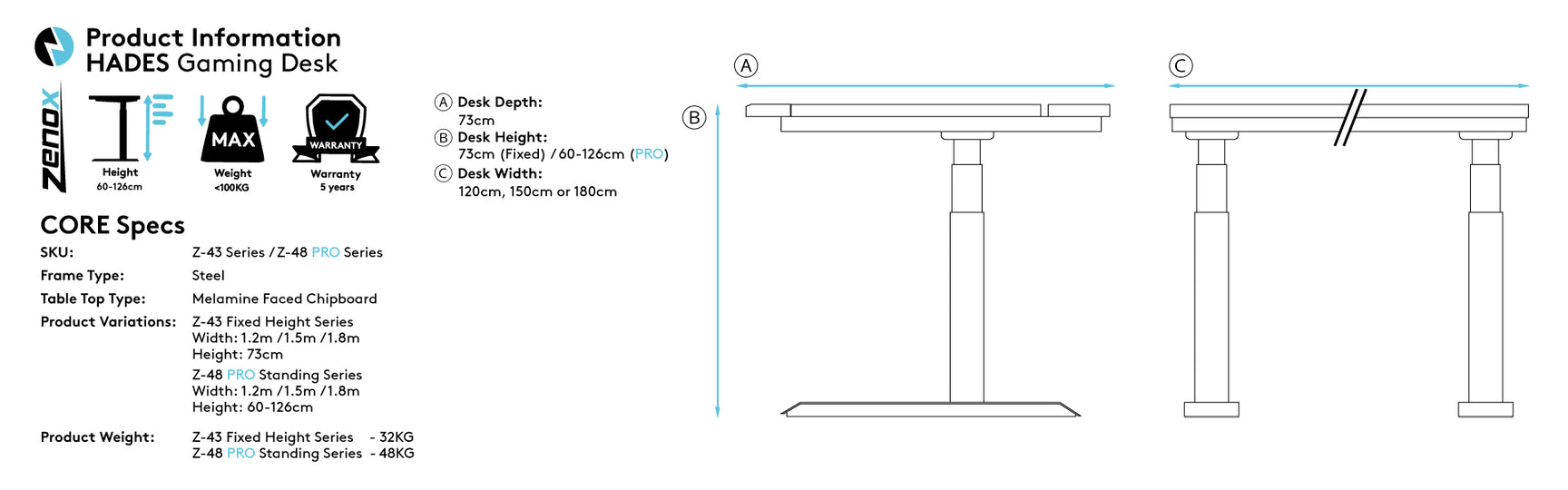 Hades 冥王 / Zenox Ergonomics Office人體工學文書枱/人體工學辦公枱 Lite 系列:
