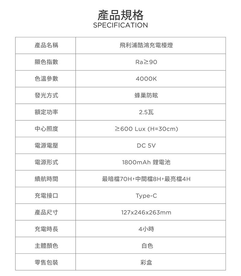 Philips Lighting 枱燈產品 / Philips Hue 智能燈產品 由飛利浦官方提供兩年保養。