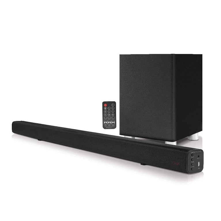 2.1 聲道環繞聲條帶無線低音炮,225W最大輸出,內置FM收音機,帶有遙控器,輸入:藍牙、USB 輸入、光纖輸入、RCA、AUX 輸入, HDMI ARC