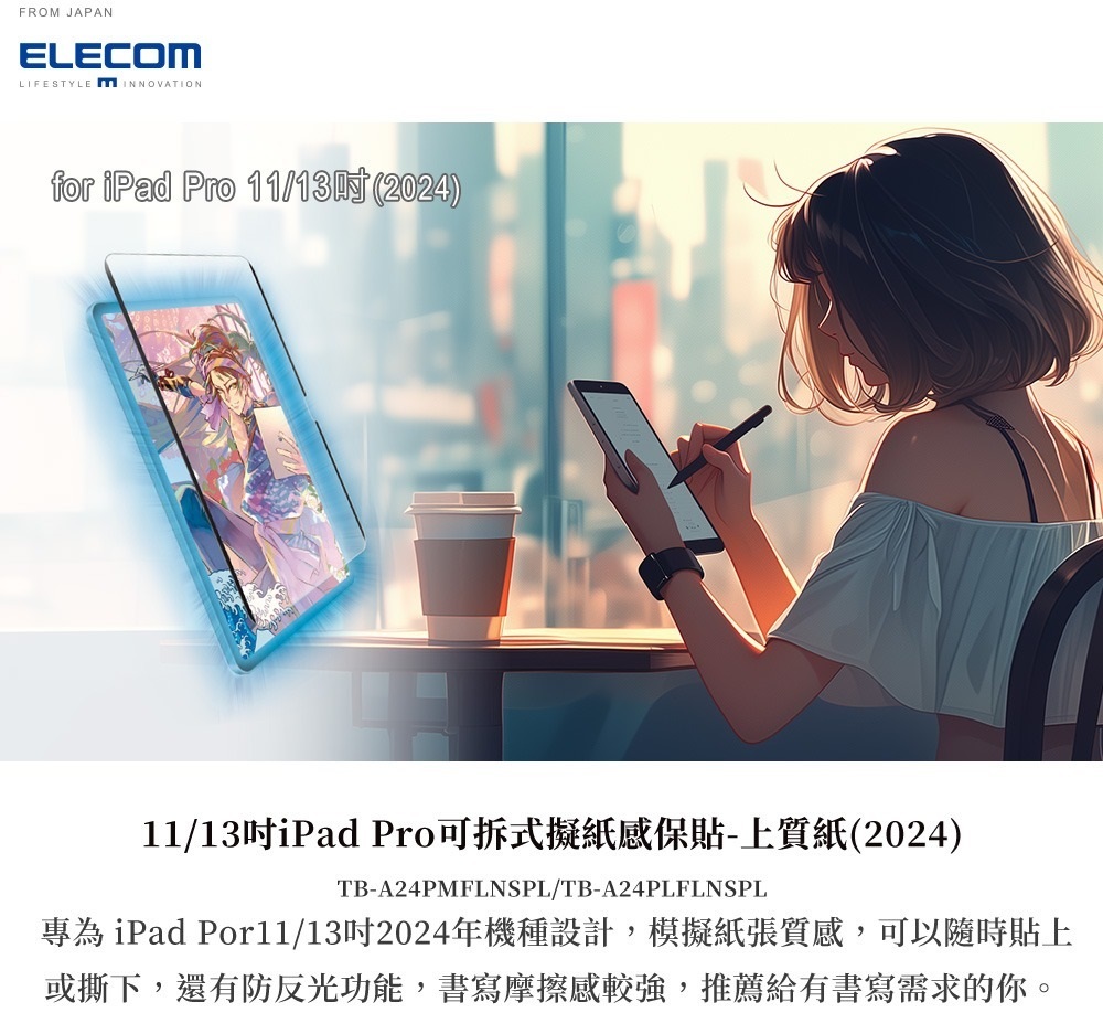 ELECOM 13-inch iPad Pro (M4) 防反光紙繪質感保護貼(上質紙-裝脫式)