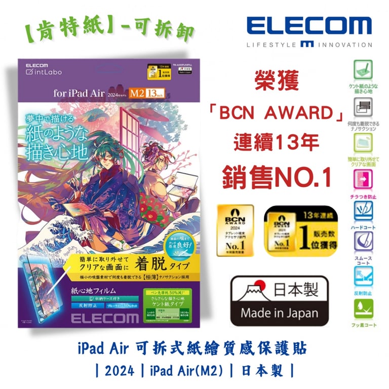 ELECOM 13-inch iPad Air (M2) 防反光紙繪質感保護貼(上質紙-易貼式)