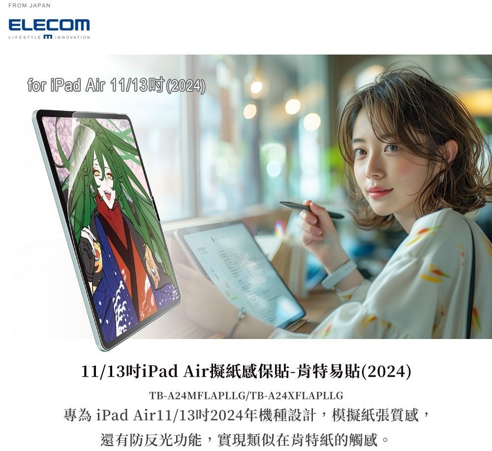 ELECOM 13-inch iPad Air (M2) 防反光紙繪質感保護貼(肯特紙-易貼式)