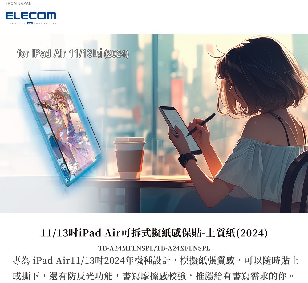 ELECOM 13-inch iPad Air (M2) 防反光紙繪質感保護貼(上質紙-裝脫式)