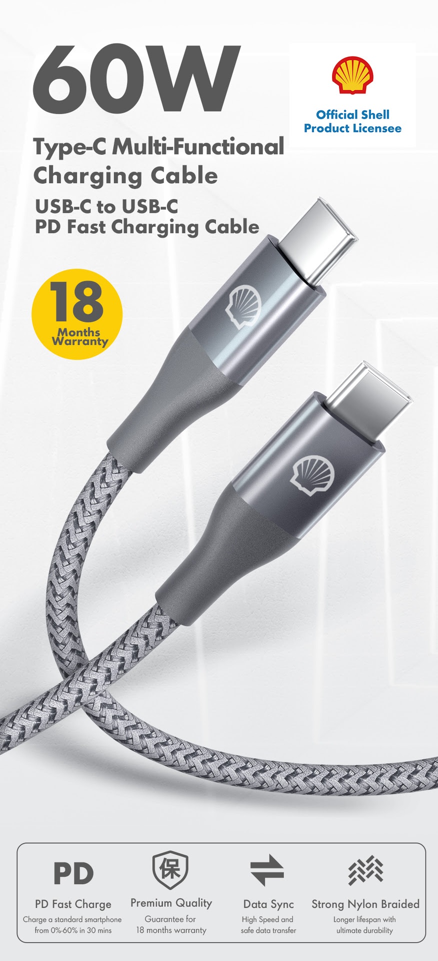 Shell CB-CC012 灰銀尼龍編織充電線(USB C to USB C-1米)