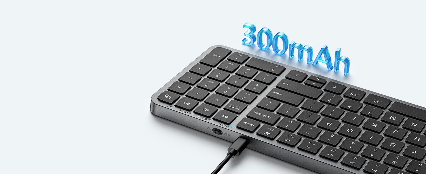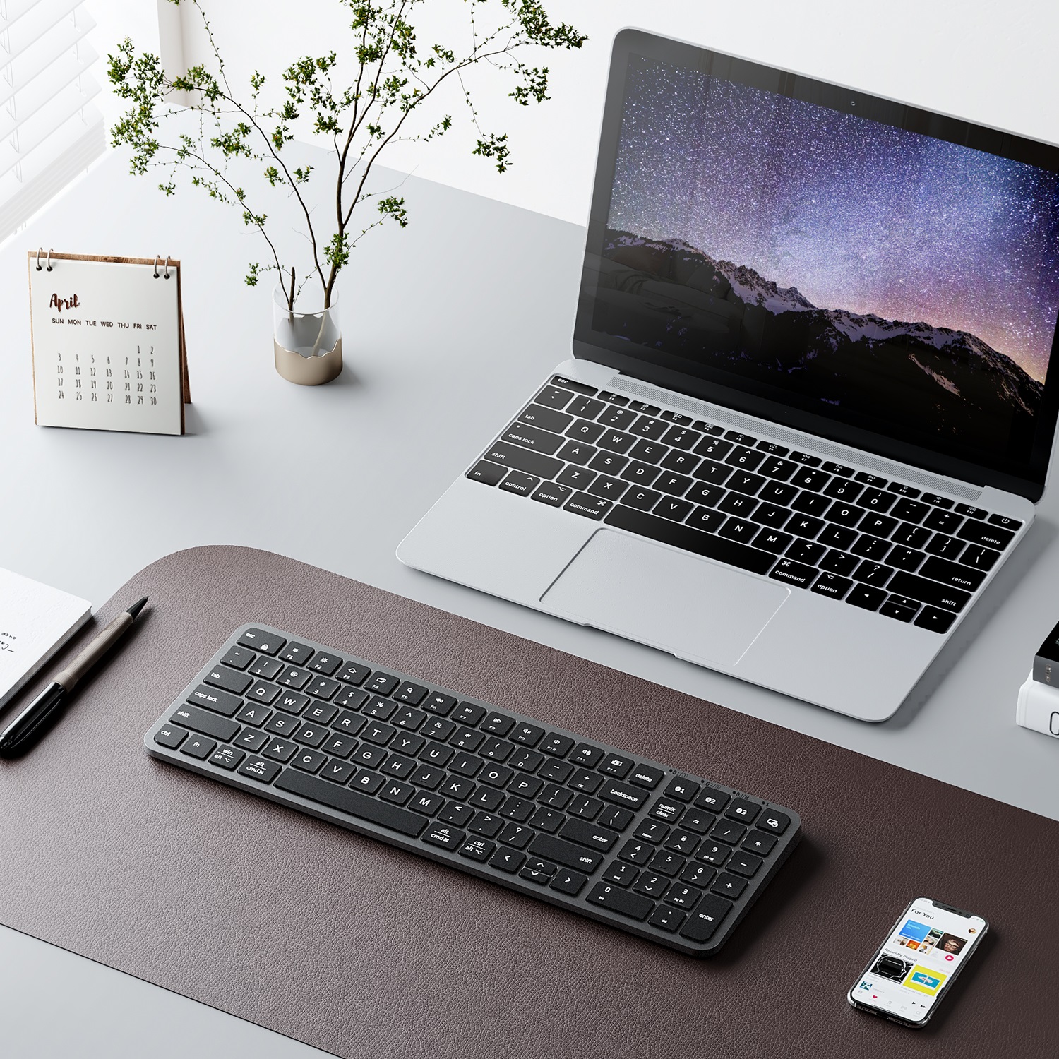 藍牙5.0鍵盤,剪刀腳按鍵,Mac-Layout, USB-C可充電300maH電池,安靜,適用於Windows,iOS,Android, 可配對3台設備