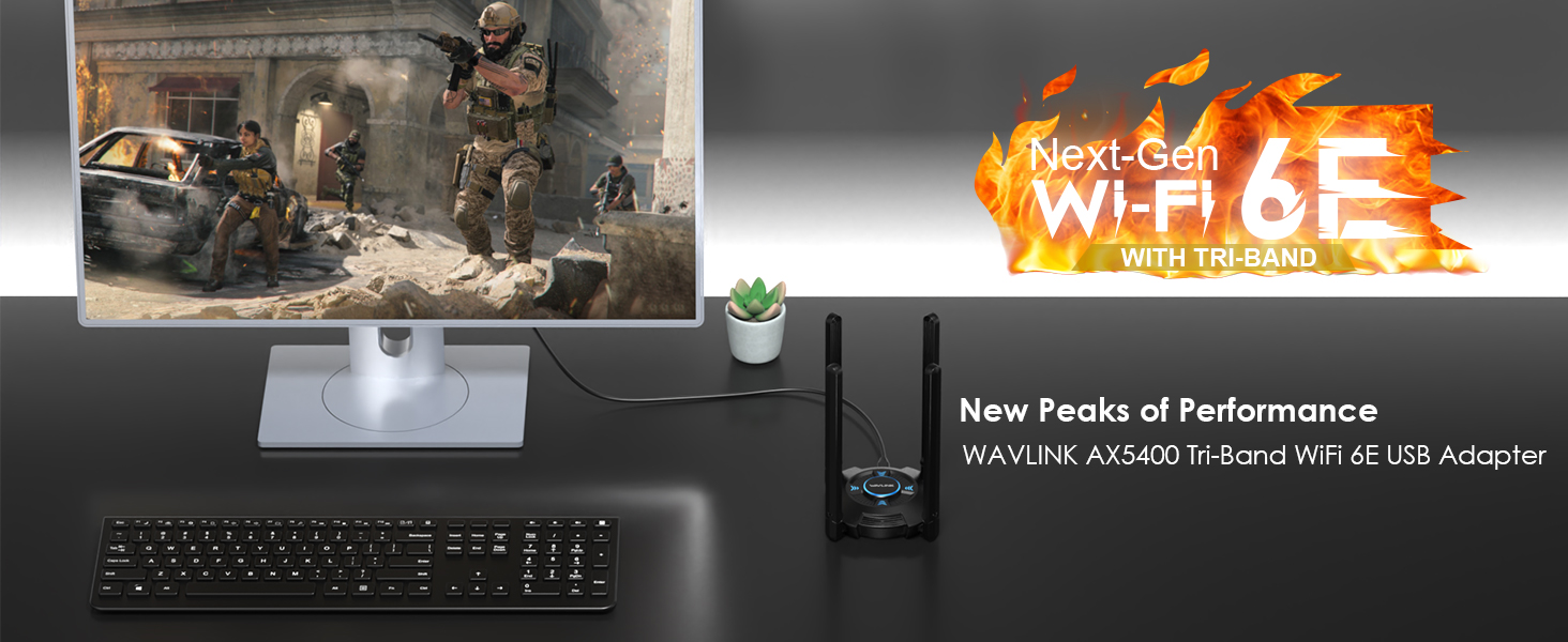 WAVLINK Wi-Fi 6E AX5400 Tri-band USB3.0 WiFi Adapter--Soaring to New Height!
