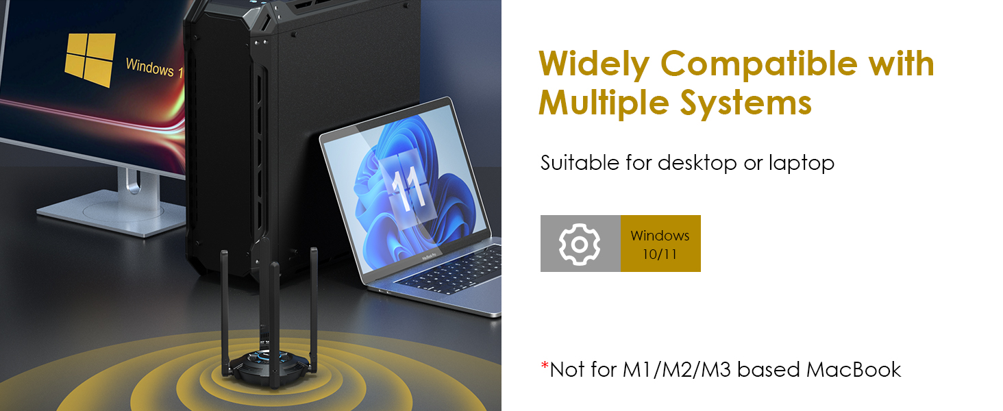 Compared with WiFi 5, this WiFi 6E adapter can supply higher data capacity and higher data transfer speed.