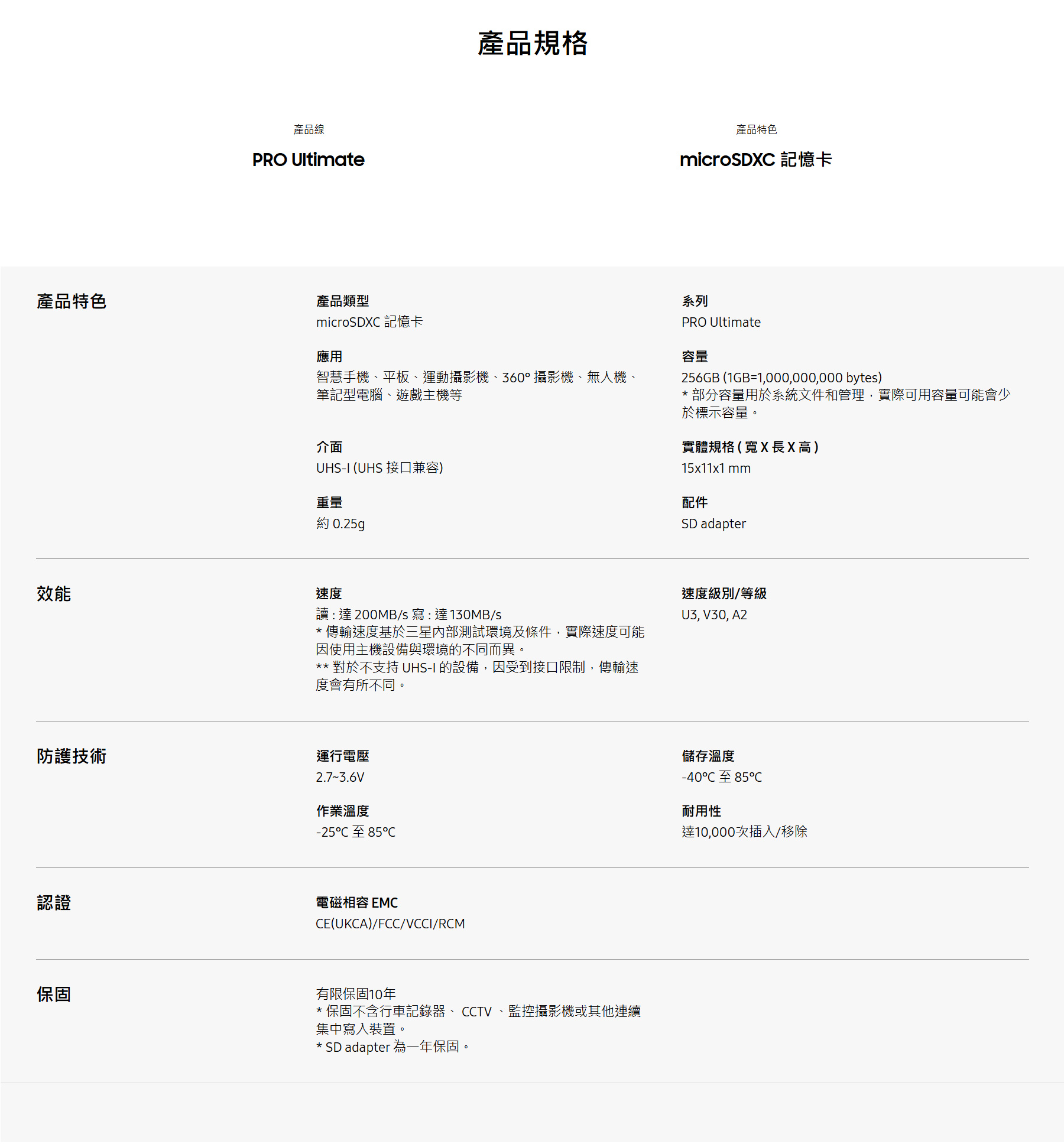 【10年保用】Samsung 三星 Pro Ultimate R/W 200/130MB/s Micro-SD(請保留包裝, 以便日後保養)(256GB)