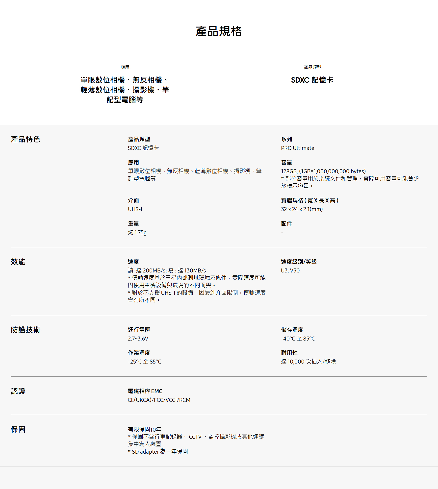 【10年保用】Samsung 三星 Pro Ultimate R/W 200/130MB/s SD(請保留包裝, 以便日後保養)(128GB)