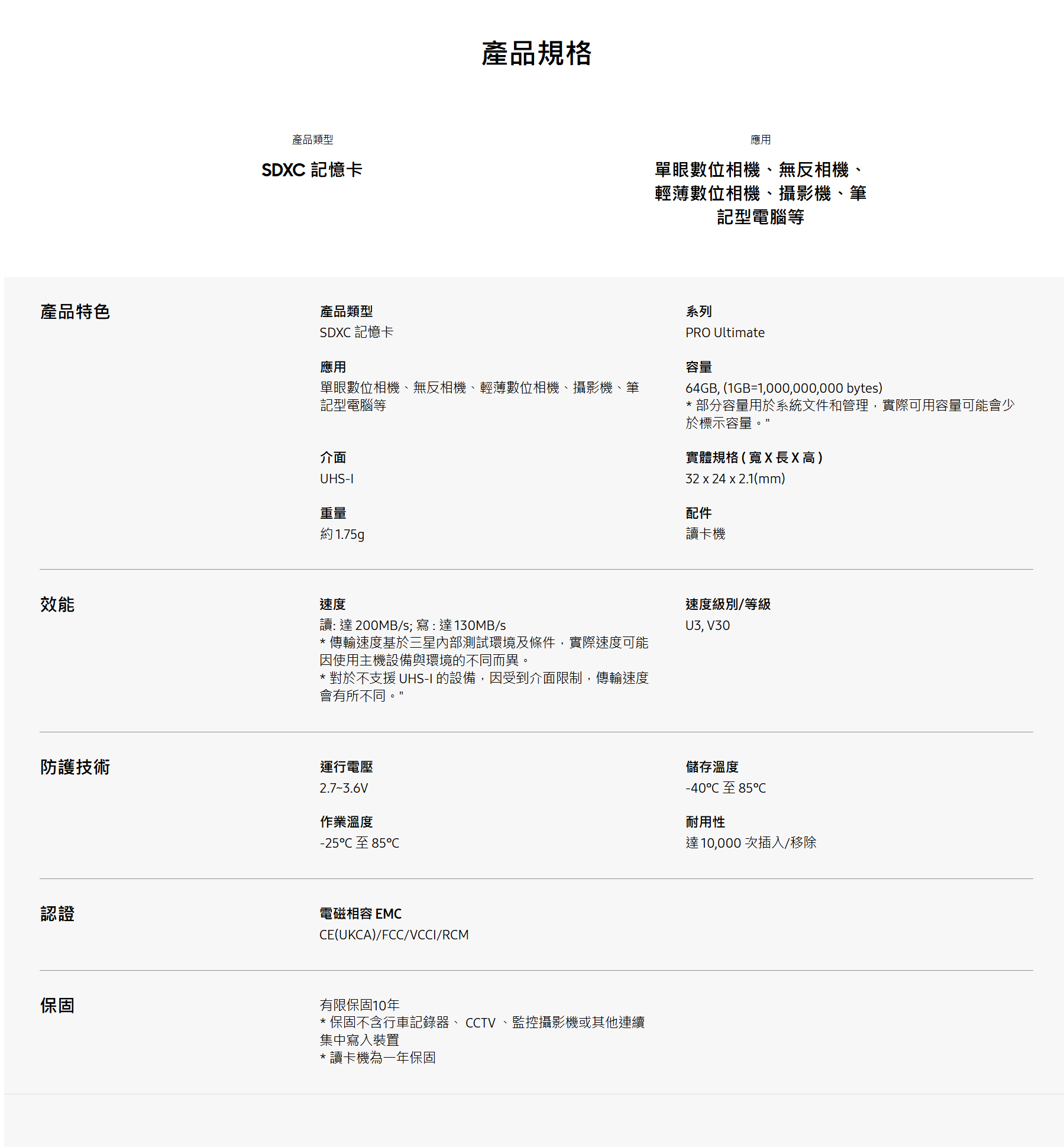 【10年保用】Samsung 三星 Pro Ultimate R/W 200/130MB/s SD 連讀卡器(請保留包裝, 以便日後保養)(64GB)