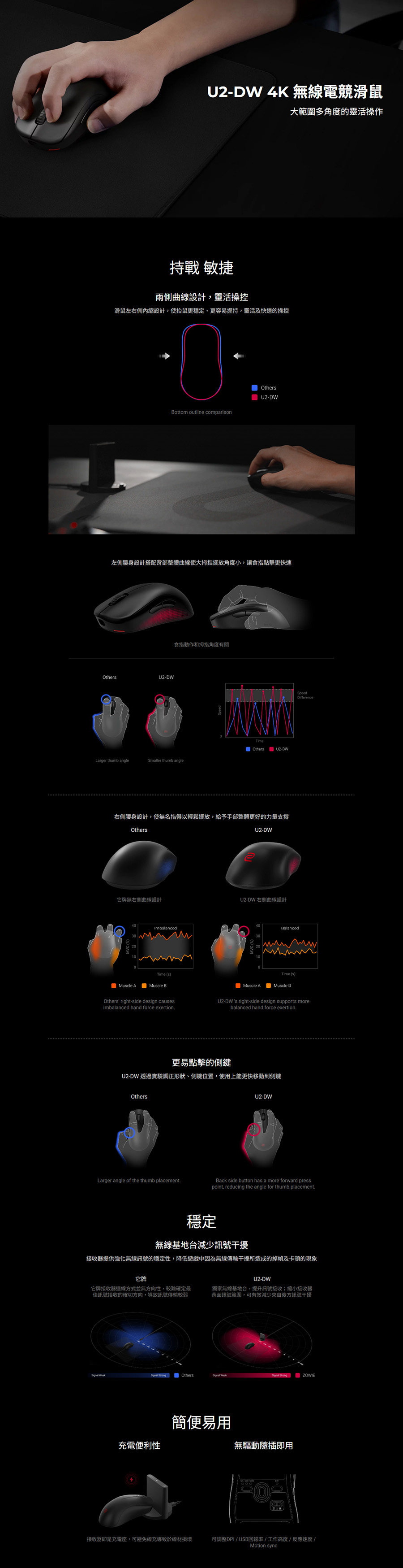 ZOWIE U2-DW 4K 無線電競滑鼠(黑色)