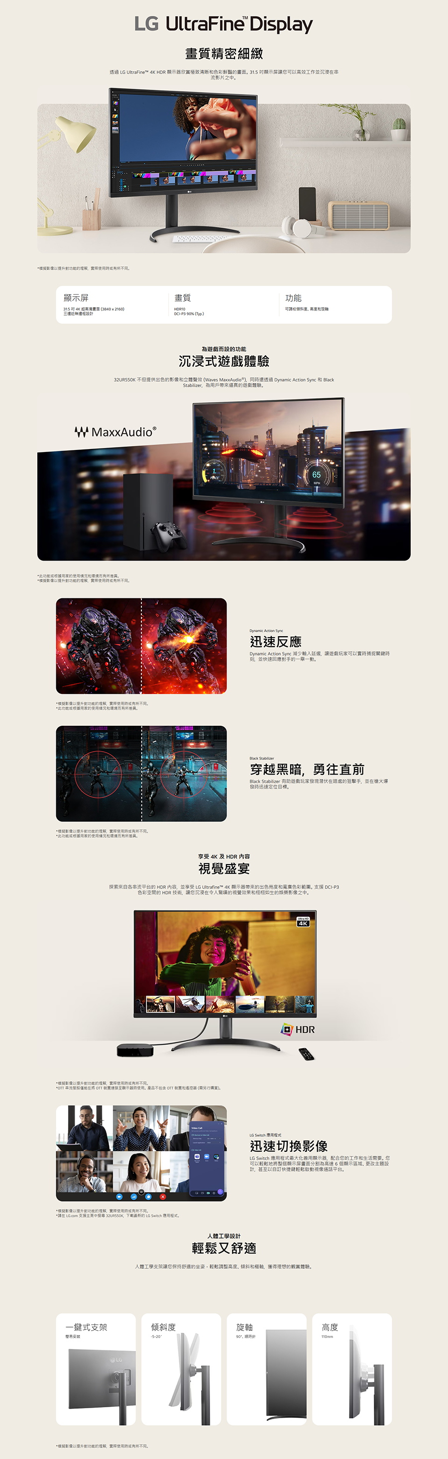 LG UltraFine 32UR550K-B 31.5吋 4K UHD VA HDR 顯示器
