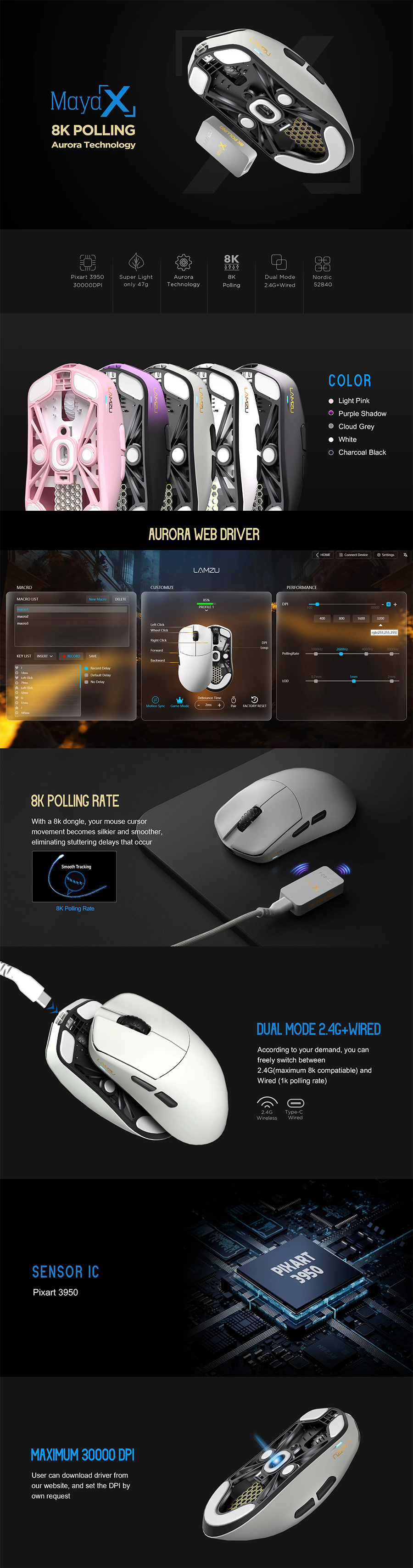 溫馨提示:Maya X 8K 附帶之 8000Hz無線接收器 無法匹配至其他Lamzu滑鼠型號。