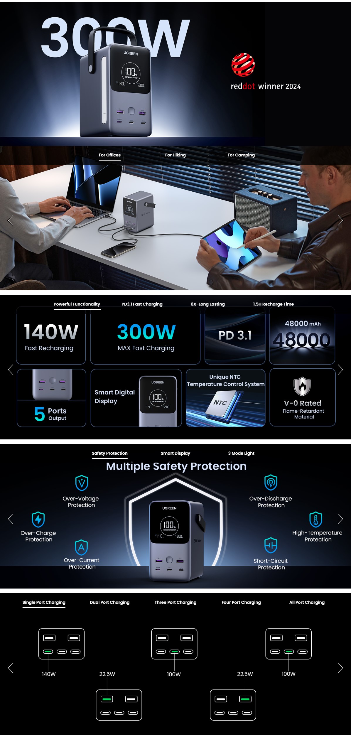 - UGREEN便攜式充電器:300W輸出,PD3.1,1.5小時快速充滿,5個連接埠。
