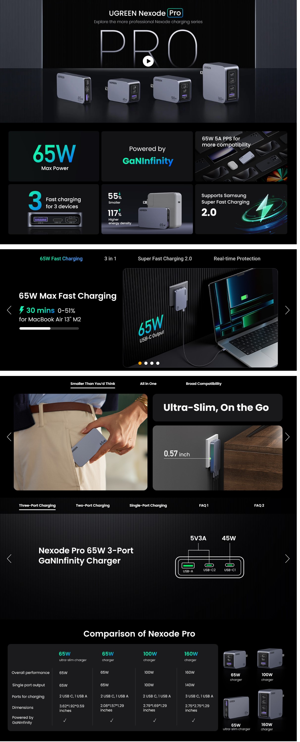 - Nexode Pro系列:UGREEN推出全新充電系列Nexode Pro 65W平板超薄,擁有更先進的技術和更專業的充電器,帶來下一代充電體驗