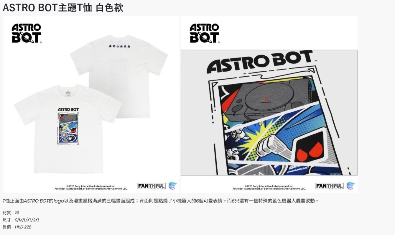 Fanthful《宇宙機器人》Astro Bot 純綿T-Shirt(S-白色)