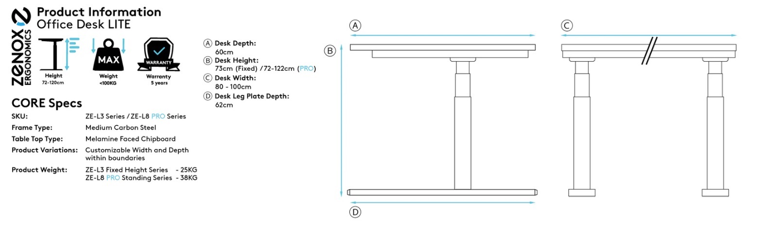 Zenox 人體工學辦公枱 Lite - 為小空間而設的完美辦公枱。