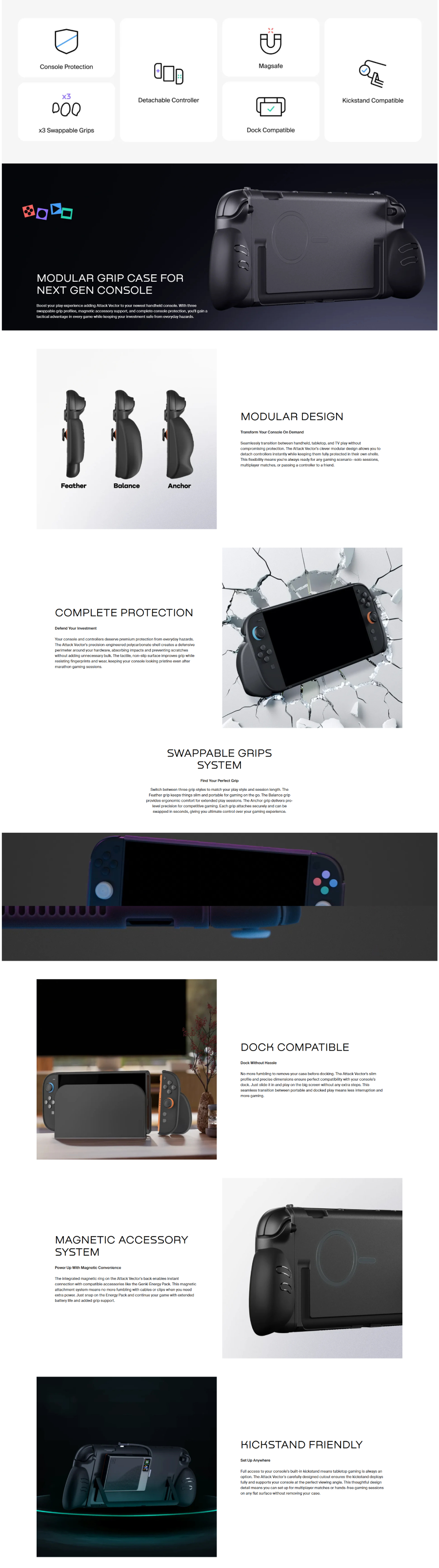 Attack Vector is built for those of us whose hands aren't exactly NS Controller-sized—or who just like a little extra precision when it's game time. This three-piece modular case system lets you mix and match grips that match your style: from ultra-slim travel mode to all-out anchor grip stability.