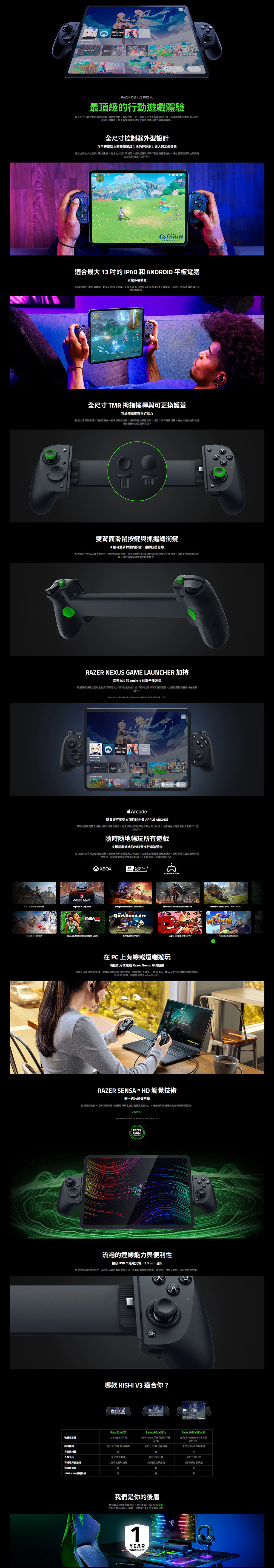 用全尺寸行動控制器給你超讚行動遊戲體驗,輕鬆控制一切。專為全尺寸平板電腦所打造,具備專業級控制器的人體工學設計與效能,加上為整個產業訂定了嶄新標準的廣泛裝置相容性。