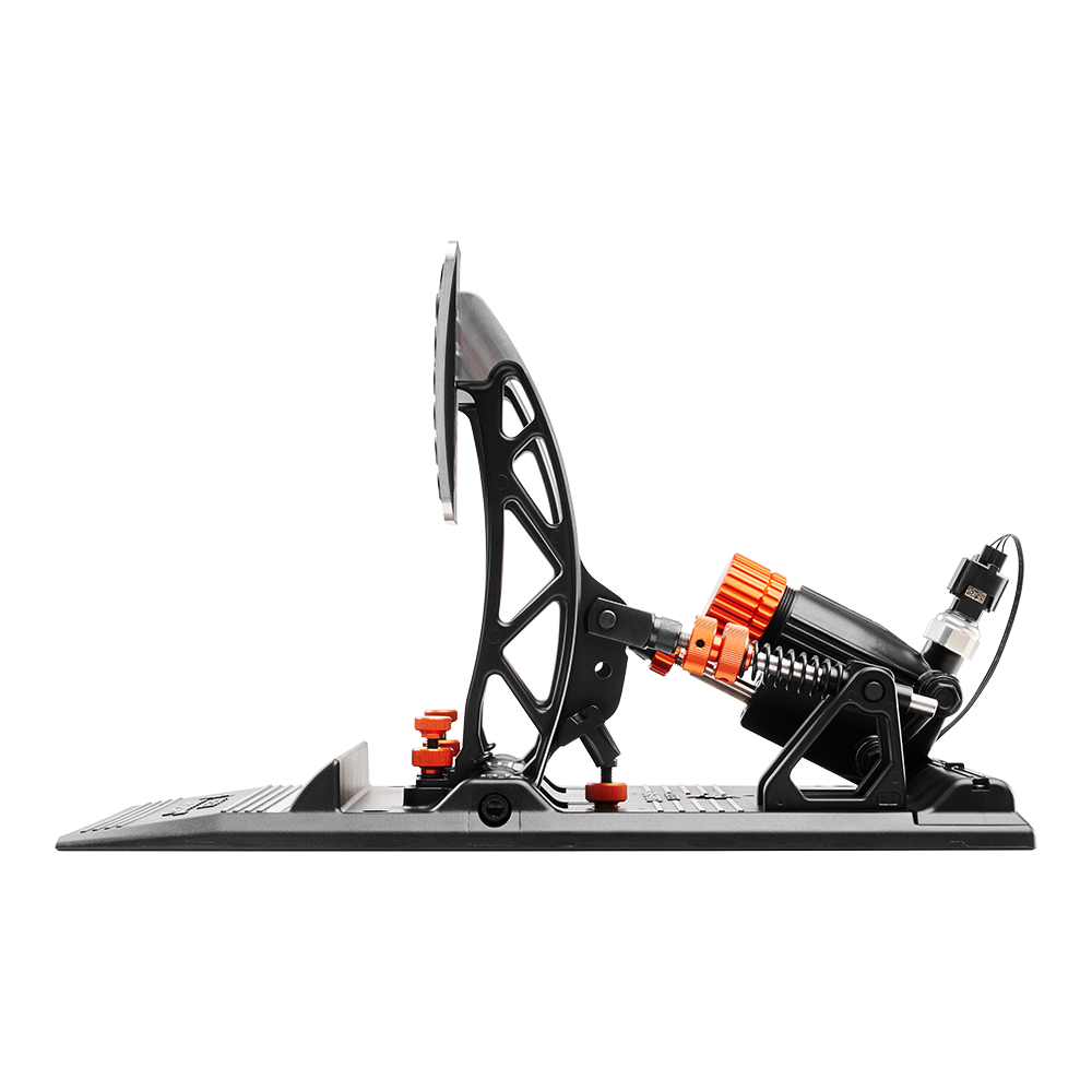 當奴缸機構抵達鎖定點,腳感將100% 等同真車中進入高壓剎車階段時的反饋。你可以一路踩到底,最高可施加 100 bar 液壓壓力(約等同 185 公斤踩踏力量),與 F1 賽車相同標準。