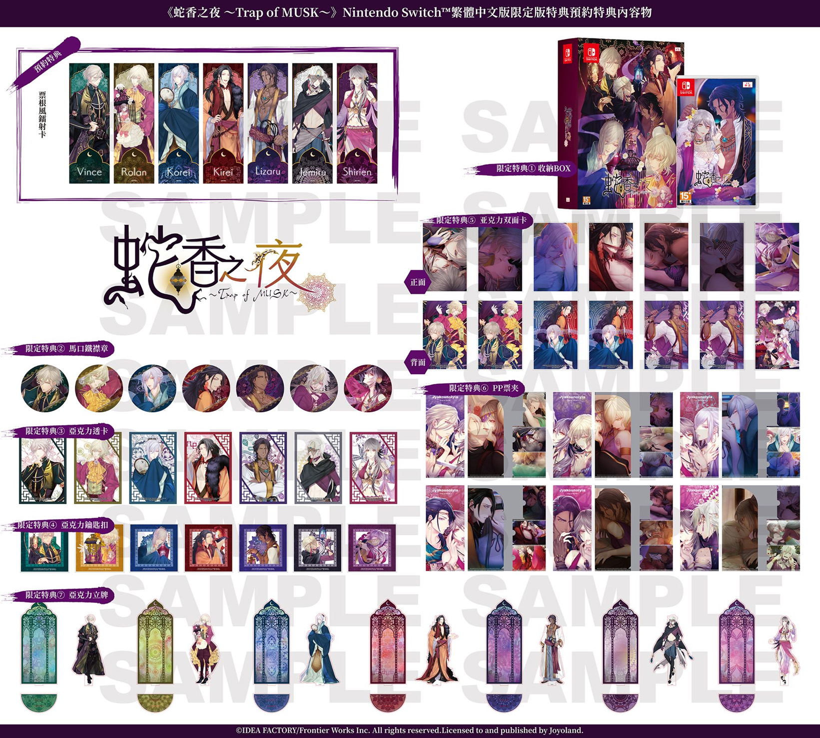 《蛇香之夜 ~ Trap of MUSK ~》 Nintendo Switch 亞洲繁體中文版預定於 2025 年 9 月 4 日發售! 本作以三角關係 + 阿拉伯×香艷為主題, Nintendo Switch 平台的《蛇香之夜 ~ Trap of MUSK ~》為 PC 版《蛇香之夜 ~ Allure of MUSK ~》三作合一 + 追加要素的移植作品。