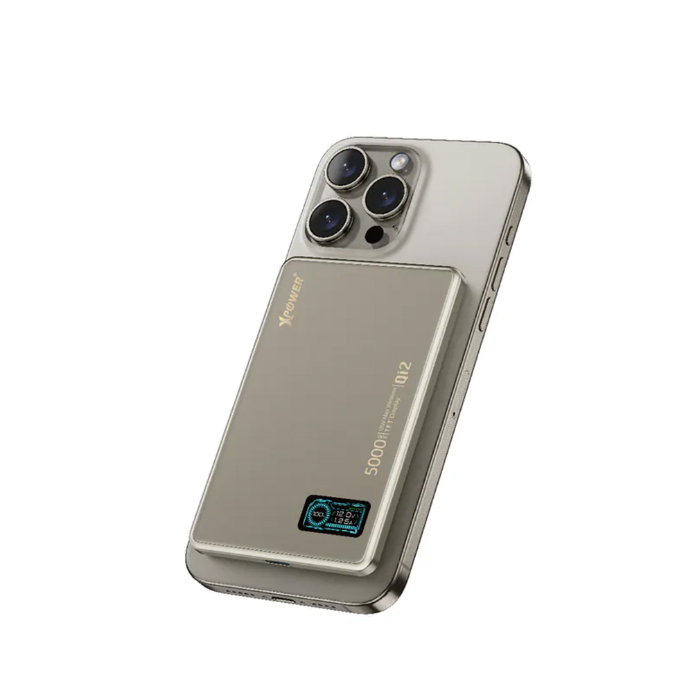 XPower MagDigita5 彩屏顯示 鋁合金外殼5000mAh PD3.0+QI2 磁吸移動電源(Black)